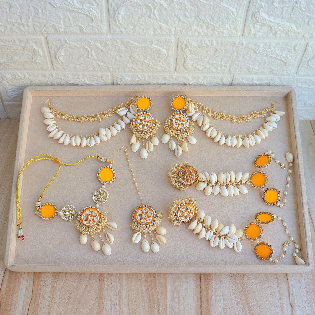 Ideal for brides, bridesmaids, and festive occasions, this Haldi jewellery set completes your look with charm, grace, and a perfect touch of celebration.